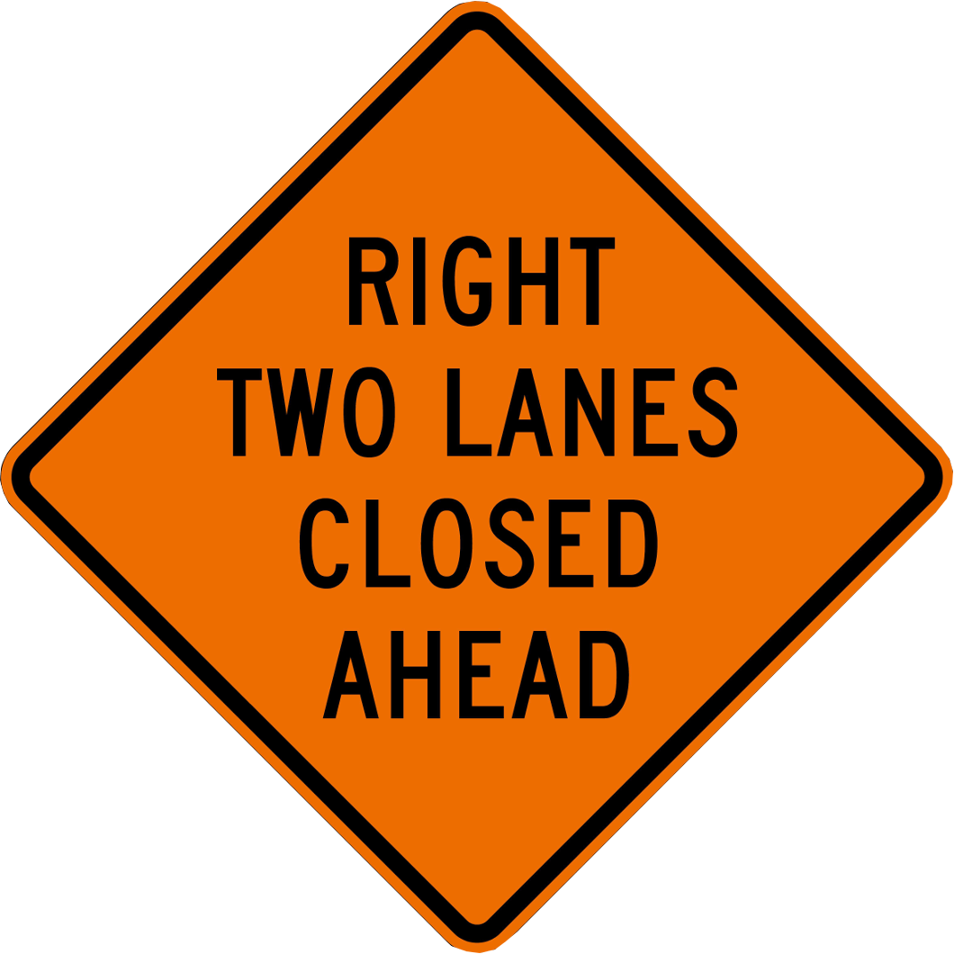 Right Two Lanes Closed Ahead - Roll Up Sign